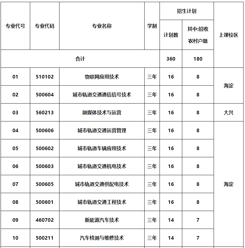 (4)城市轨道车辆应用技术和城市轨道交通工程技术只招收男生(企业用工要求)。